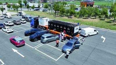 “五一”假期,全国首个高速“移动充电航母”示范项目亮相G2京沪高速平桥服务区。 受访者供图
