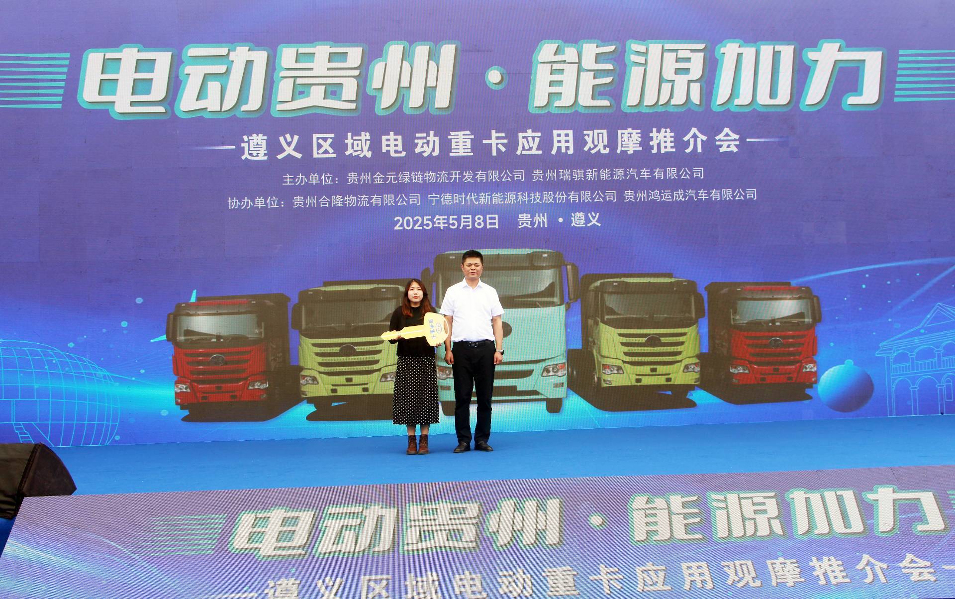 多彩贵州网讯(本网记者 罗晟鸣)5月8日,由贵州金元绿链物流开发有限公司、贵州瑞骐新能源汽车有限公司联合举办的“电动贵州·能源加力”遵义区域电动重卡应用观摩推介会在遵义成功举办。