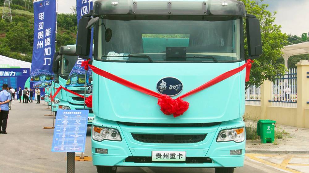 活动现场,贵州瑞骐新能源汽车有限公司向遵义合隆物流有限公司交付了26台“贵州”牌电动重卡。贵州瑞骐新能源汽车有限公司重卡产品线总经理许静波介绍,该公司生产的“贵州”牌电动重卡满电状态下行驶里程能达到270至300公里,在山多、坡陡、弯急等特殊道路上依然能达到700匹马力,在行业内属领先水平。