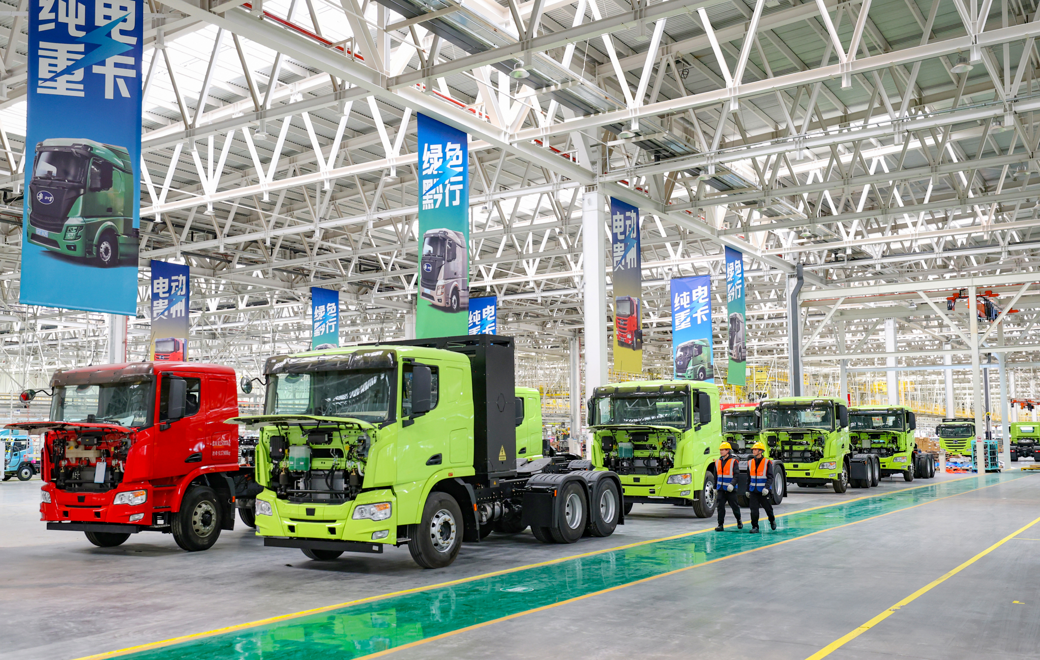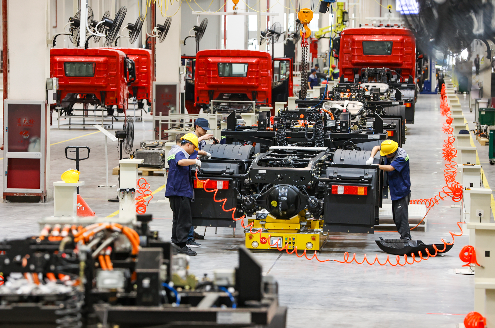 贵州长江汽车有限公司重卡产线工作人员正在完成重卡装配。