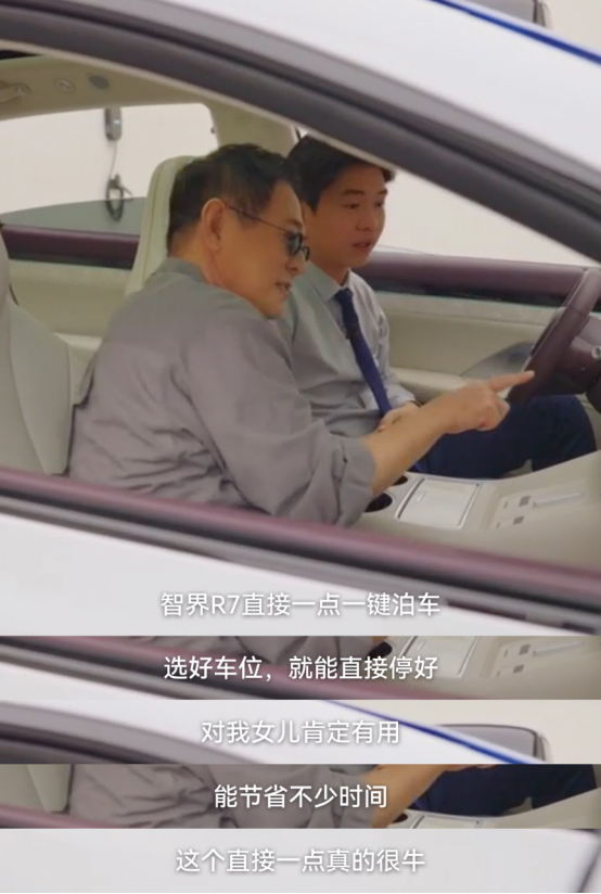 在服务中心,李连杰蹲下查看轮毂,伸手触摸车漆,打开后备箱测试空间,还特意演示了隔窗对讲、语音控车等智能功能。他透露,这辆车是女儿自己看中并决定购买的,他只是来“代提”。但言语之间,难掩对这款车型的认可。