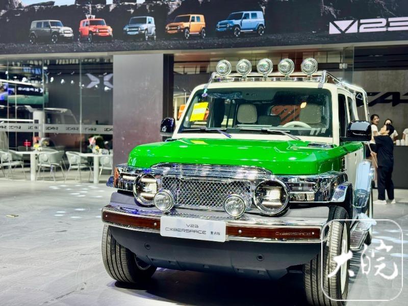 除了超级V23,现场还展示了iCAR V23。“这是一台让年轻人一见倾心的电动小G,好看、好玩、好用、好开,是专为热爱自由的年轻人量身打造的A级纯电跨界SUV。”工作人员介绍,该车型独特的方盒子造型与较大的车身尺寸展现的力量感和视觉冲击力成为吸引年轻人的主要因素。