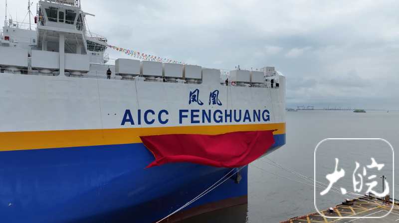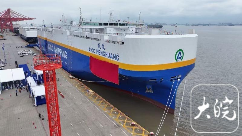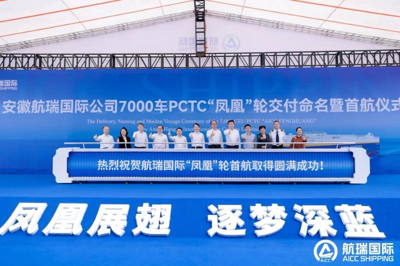 大皖新闻讯 9月29日,在上海海通国际汽车码头,由安徽省港航集团旗下航瑞国际公司投资建造的首批7000车位LNG双燃料远洋滚装船3号船“凤凰”轮正式命名交付并开启首航,安徽远洋滚装运输船队规模进一步扩充。