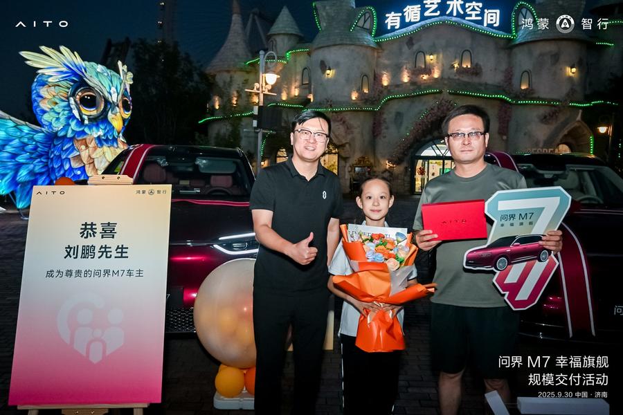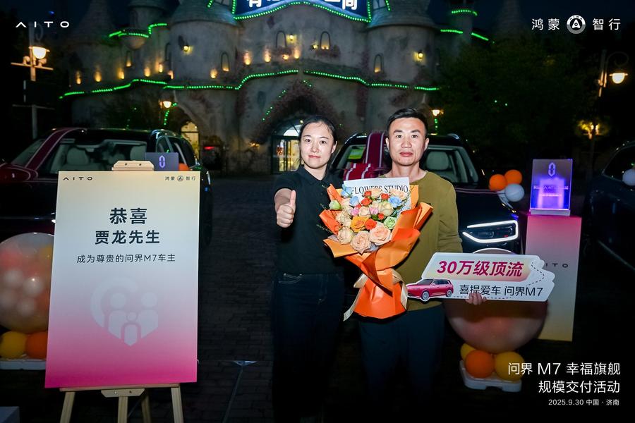 此次M7幸福旗舰规模交付仪式,不仅是问界M7加速市场落地的重要节点,更标志着济南地区 “智慧出行新篇章” 的正式开启,将进一步满足当地用户对高端新能源车型的需求。活动现场,首批车主代表也分享了对问界M7的期待与认可,盛赞其 “兼具豪华设计质感与绿色环保价值”。