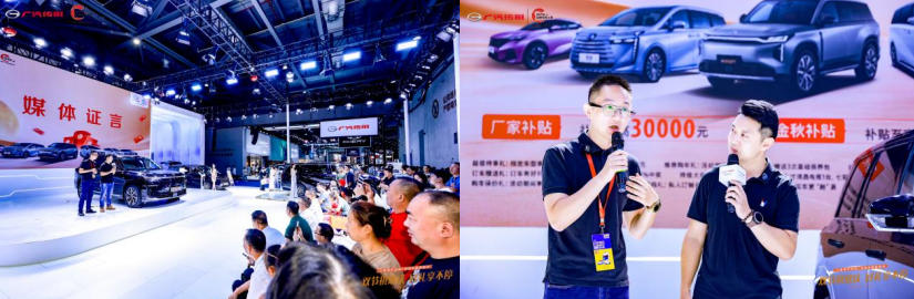 展会期间,传祺展台始终是南昌国际博览中心的“流量高地”——从上午9 点开馆到下午5 点闭馆,展台前的人流从未间断。扫码留资区前,观众排着小队领取定制帆布包,工作人员一边递礼品一边耐心解答“如何预约试驾”“置换补贴怎么申请”;洽谈区的6 张桌子座无虚席,销售顾问们拿着车型手册和计算器,为一波又一波消费者讲解购车方案,连喝水的间隙都要小跑着回应新的咨询。不少路过的参展者被热闹的氛围吸引,纷纷探头询问:“这是什么车?看着人气好高!”