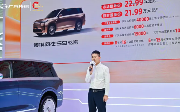 9月30日,广汽传祺向往S9在天津十一车展上举办了区域品鉴会,共推出4款车型,提供5座和6座版本,上市指导价22.99-25.99万元,限时置换价21.99-24.99万元。同时赠送的上市礼包综合价值超40000元。向往S9定位为一款插混中大型SUV,全系标配华为乾崑ADS 4 Max 超阶版、鸿蒙座舱HarmonySpace 5、宁德时代44.5度骁遥超级增混电池、广汽超级智电四驱等等,基本上做到了入门即豪华。