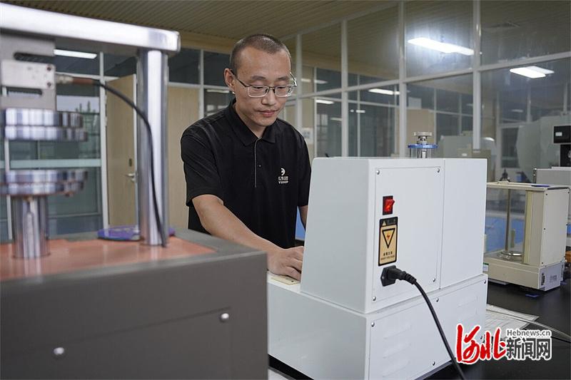 9月28日,河北亿利科技股份有限公司实验室内,工作人员对滤清器零部件进行检验。 河北日报记者 魏雨摄