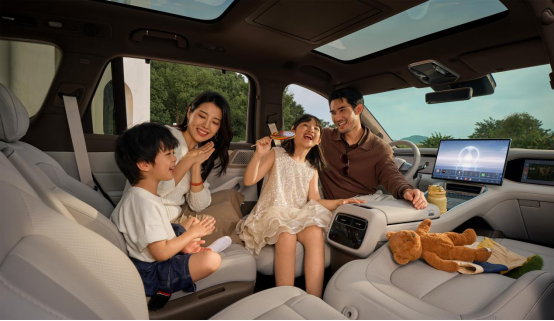 同时,腾势N8L空间超越同级:套内面积6.11㎡、人均超1㎡,结合超1.3米车内垂直高度,实现“三排一样大,座座都宽敞”,即便六个1.8米高个子成年人乘坐也非常宽敞,为用户打造“超豪华移动大平层”;而三排最大121°调节角度与100mm前后滑移等设计,更是让第三排和前排一样舒适。