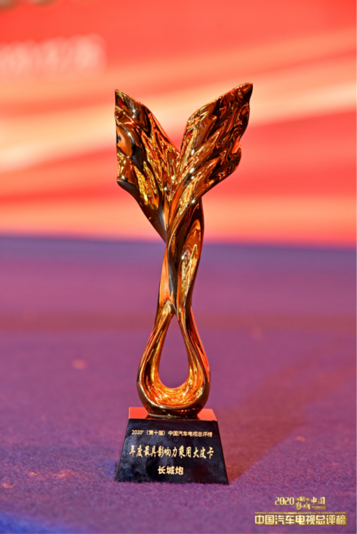 12月26日,2020(第十届)影响中国·中国汽车电视总评榜颁奖典礼在云南昆明举行。长城炮凭借产品力、品牌价值和行业影响力等方面的优势在评选中力压竞争对手,获得了“年度最具影响力乘用大皮卡”的殊荣。