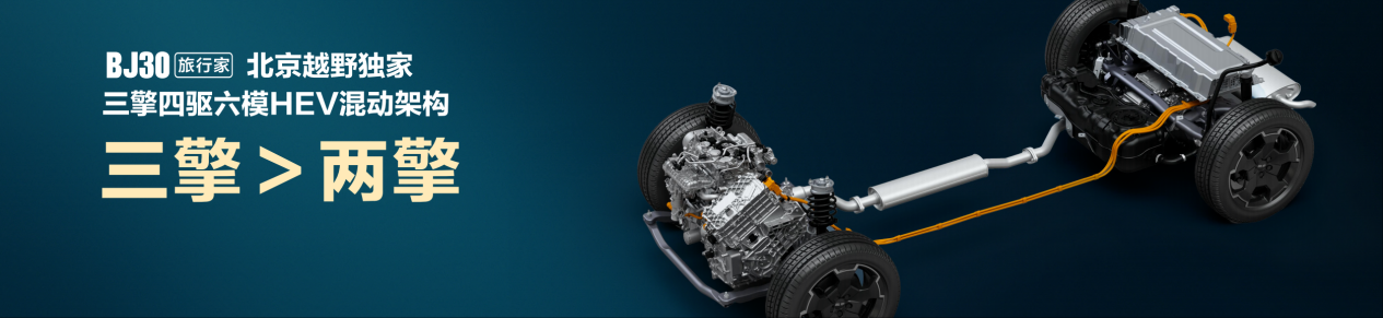 BJ30旅行家搭载超级混动系统,拥有同级最大的301kW综合功率和同级最大的685N·m综合扭矩;搭载电四驱系统,响应速度仅需0.03秒,是机械四驱的3倍以上;搭载极速模式,零百加速仅需6.59秒;配备“能量中锁”和“四轮电子限滑”功能,能自动识别打滑车轮并将动力瞬间转移至有附着力的车轮,实现轻松脱困;拥有ATS全地形控制系统,提供雪地、沙地、泥地、涉水等7种驾驶模式,应对旅行之中的复杂路况。BJ30旅行家通过更高维度的技术标准来打破轻越野市场。可以说,这是对行业现有产品的“降维打击”。