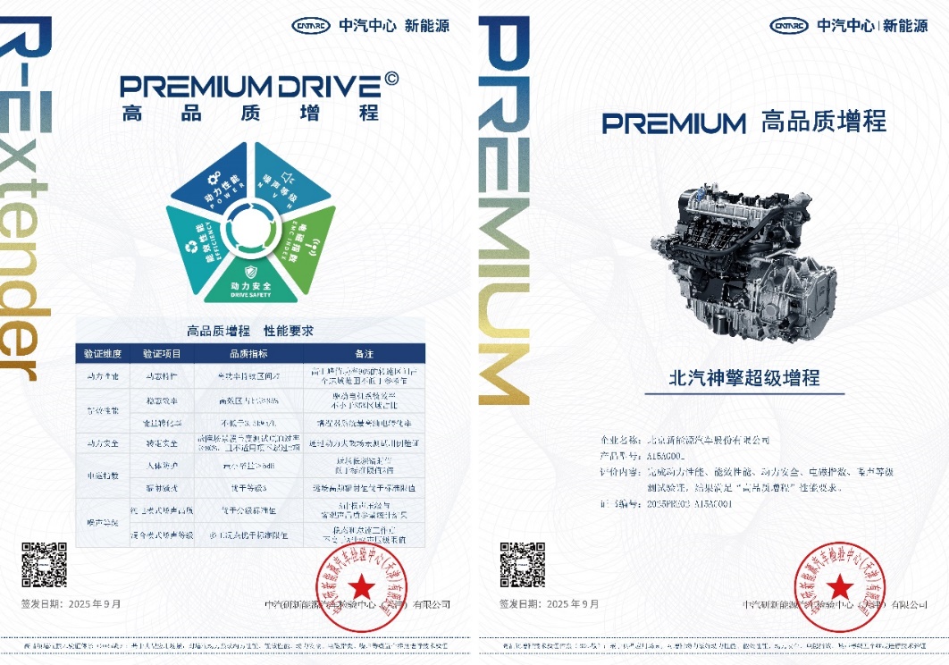 至于增程车领域普遍存在“电池越做越大”的“非必要高成本”趋势和“增程器启停时抖动大、开起来噪音吵”问题,新车也做出了改变。其搭载北汽神擎增程动力+宁德时代骁遥增程专属电池,一举攻克“抖、吵、馈电慢”三大痛点。其中,北汽神擎增程动力采用的混动专用阿特金森循环技术,热效率可达43%处于行业一流水平。