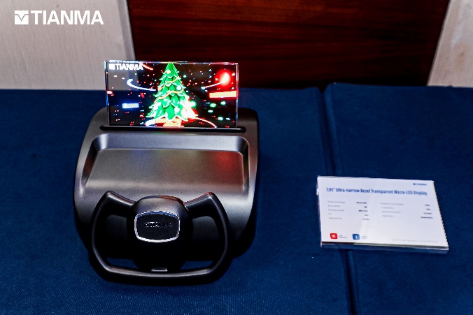 活动现场,天马带来5款Micro-LED重磅展品,呈现高亮、亮度可调、透明低反射、超窄边等技术优势,直观展示了透明显示技术的多元落地形态,以硬核技术诠释透明显示的无限可能。