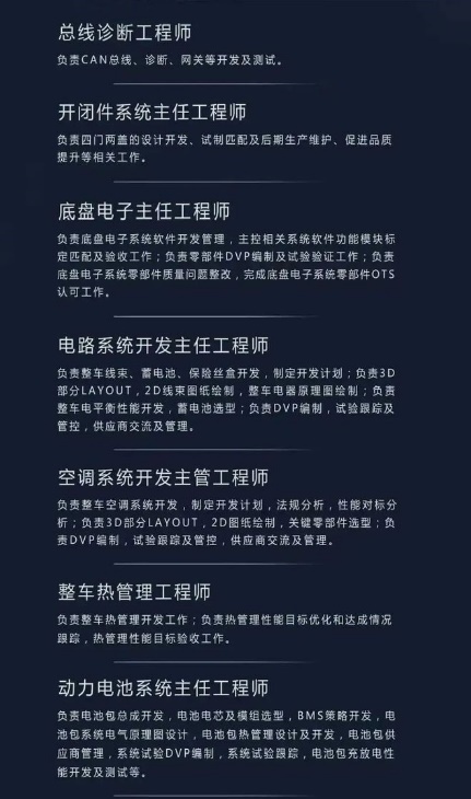 仔细审视众泰此次招聘,颇有深意。岗位不仅涵盖三电系统、智能驾驶等前沿领域,还包括底盘调校、NVH开发、CAE仿真等传统汽车工程的核心环节。这种“全链条”招聘模式,显示出组建完整研发团队的雄心。