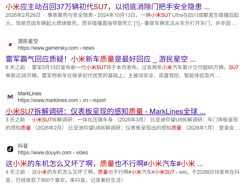 新一代小米SU7的真正考验,不在发布会有多炫、代言人有多火,而在交付能不能准时、车能不能开得放心、出了问题能不能负责到底。谐音梗可以一时热闹,但用户只会为安全、可靠、诚信买单。汽车行业,从来不是靠段子取胜。小米汽车,该回到造车本身了。