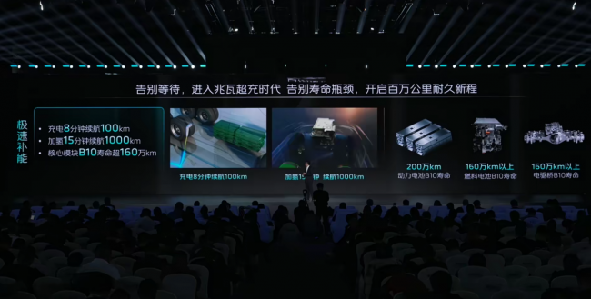更深层的资产保值逻辑,体现在核心模块的超长寿命设计上。福田卡文重卡BEACON搭载的677kWh电池模块,可支持200万公里运营;自研300kW燃料电池系统,B10寿命达160万公里。这一寿命指标,已将新能源重卡的核心资产周期推至与燃油重卡相当甚至超越的水平。