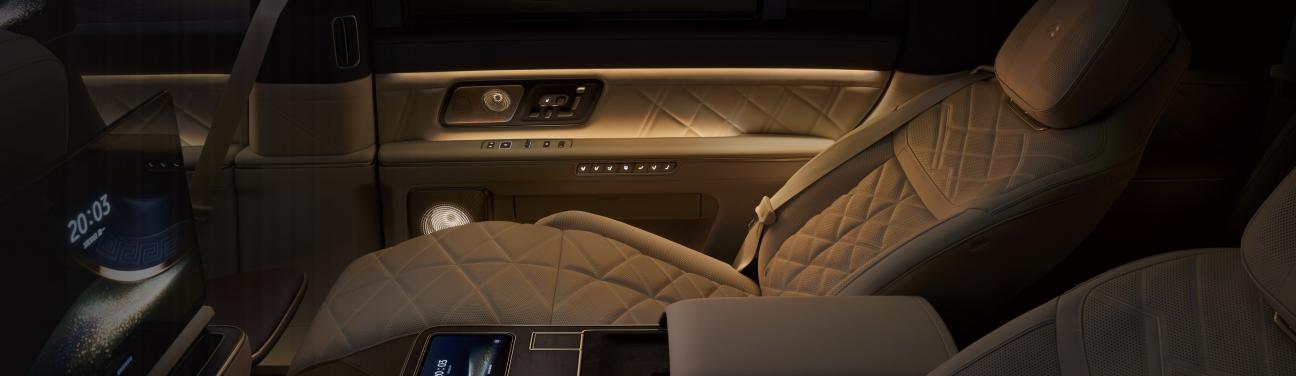内饰汲取中国山水画的美学灵感,以传世千年的非遗苏绣工艺,用近40万针脚交织出壮美“河山锦绣”图,将天地之美融入其中。