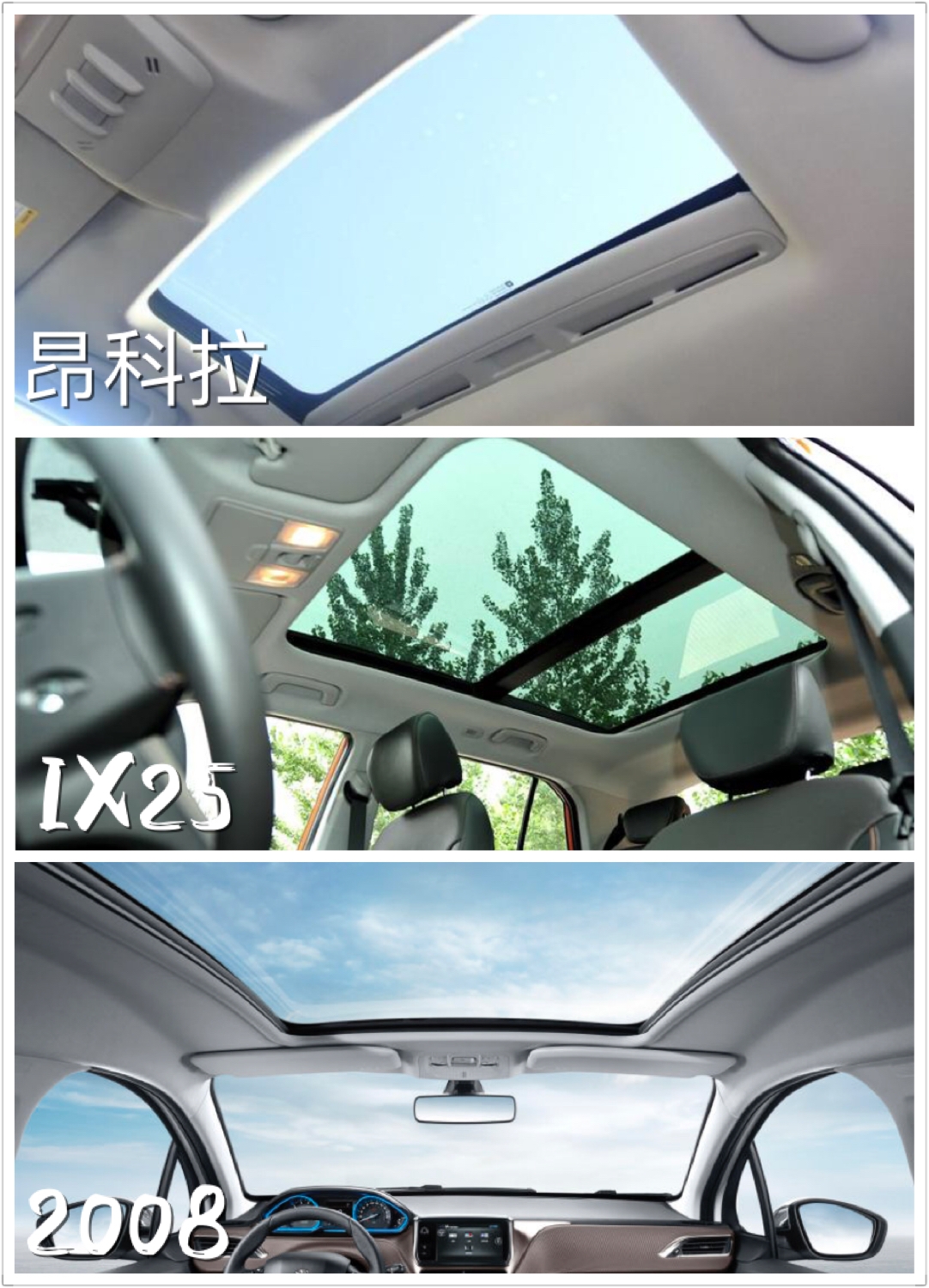 自驾出行的旅途中,与亲朋好友纵享“玩乐”,当然少不了一款开阔视野的汽车。作为城市SUV中的代表车型,昂科拉、IX25与东风标致2008在拥有时尚外观的同时,都配备有视野不错的天窗。