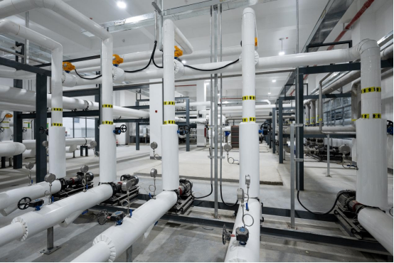 据悉,“绿色”“智能”是郑州新厂的两大亮点。在环保方面,工厂参照LEED金级认证标准,引入了智慧热水中心、光伏发电及智能制冷等30余项节能降耗措施。其热水中心通过集成余热回收与热泵技术,有效提升热能综合利用效率,预计可降低蒸汽使用量60%以上。同时,工厂采用先进水处理工艺,以支持太古可口可乐2030年水资源利用率目标。