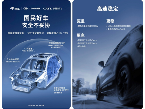 “国民好车”自公布之初,其模式就备受瞩目。京东相关负责人此前透露,此次合作中,京东主要负责用户消费洞察、独家销售及买车养车资源整合,不直接参与整车制造。广汽集团贡献其成熟的整车研发与制造能力;宁德时代则提供先进的电池技术及其旗下的时代电服科技有限公司的换电生态支持。三方优势互补,打造一种创新的汽车消费模式。