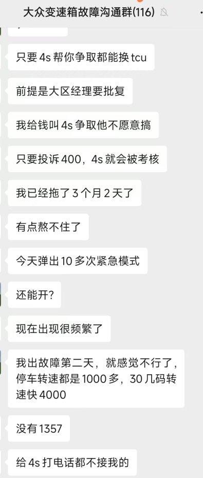 多位车主表示,维权过程充满无助。以田先生为例,他在数周内先后联系两家4S店,均被告知 “厂家只同意更换传感器,我们无权限处理”,拨打上汽大众400热线多次未获回复,通过车质网提交投诉材料,甚至发邮件至德国大众总部,均未得到实质性回应。