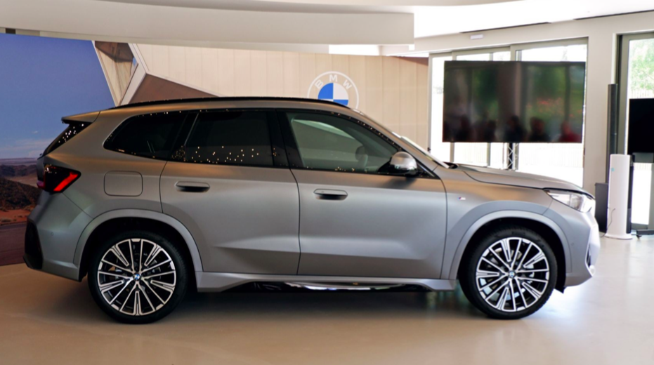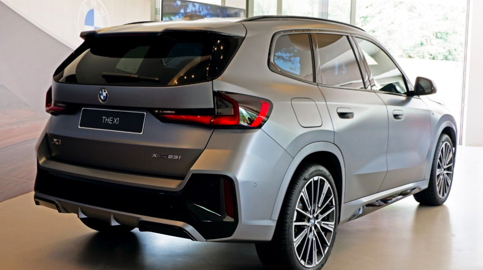 全新宝马X1侧面则是以溜背式造型强化运动观感,整体线条较为流畅顺滑。其中间一条笔直腰线贯穿前后,车门下方也有着明显凸起面板。该车对尾部三角窗面积有所加大,同时配备隐私玻璃,私密性得到改善。多辐式轮毂尺寸可观,轮眉离地高度也较为不错。