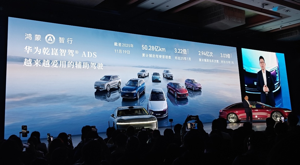 此外,发布会上还公布了一组“惊人”的数据:截止2025年11月19日,华为乾崑智驾 ADS 4累计辅助驾驶里程数达50.28亿公里,是用户越用越爱用、越用越好用的辅助驾驶。