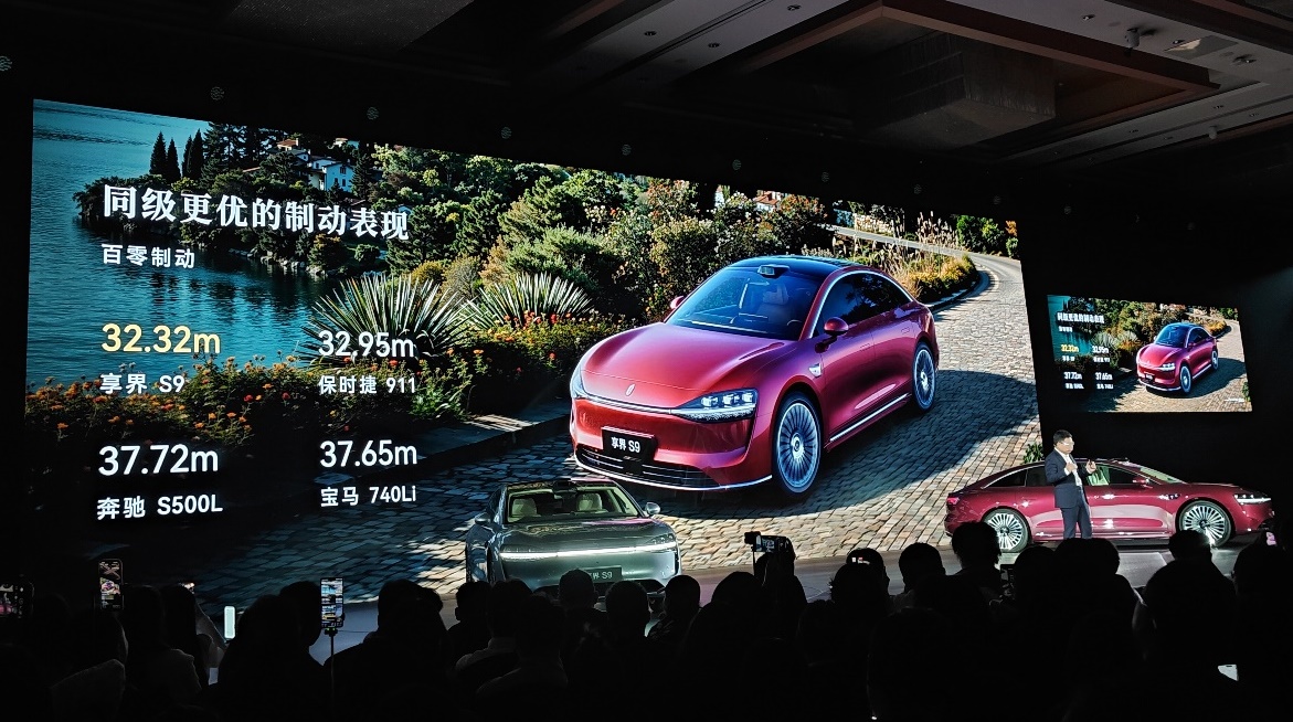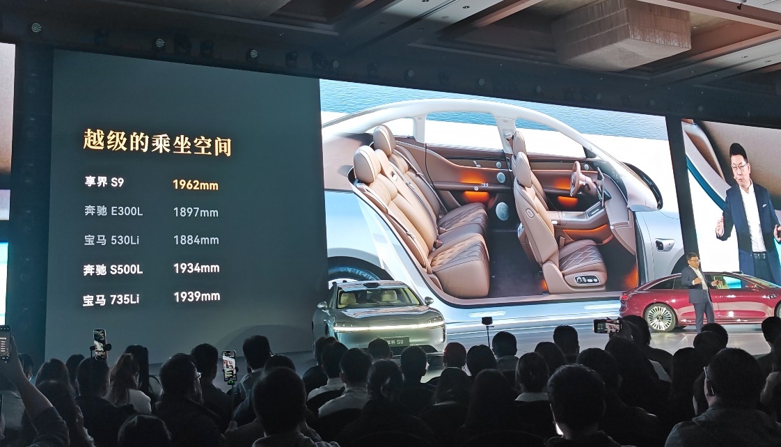 座舱方面,新款享界S9搭载16.1英寸全新中控屏、12.3英寸副驾屏、智能投影巨幕系统2.0、全新MagLink Mini控制屏等超十屏智能座舱;标配华为悦彰音响卓越系列,采用25单元声学设计,随享流动音乐厅,支持无麦K歌,随时欢唱。还搭载了鸿蒙ALPS健康座舱,采用创新可吸附降解材料,24⼩时智能新风⾃动净化空⽓,并通过中汽中心的自主智能净化座舱测试,烟颗粒物净化、整车雾霾阻隔、霉菌培养对比表现皆优异,让驾乘者安享健康。